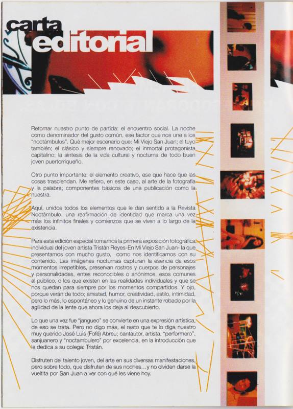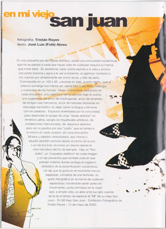 Editorial dedicado a «en Mi viejo san juan» (2003), exhibición fotográfica por Tristán Reyes